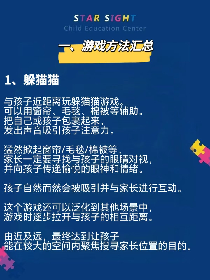 那么,怎么让自闭症儿童与家长保持良好的眼神对视呢?今天,我们给大家推荐5个小游戏+4个指令方法,供大家参考,以帮助训练孩子眼神对视。